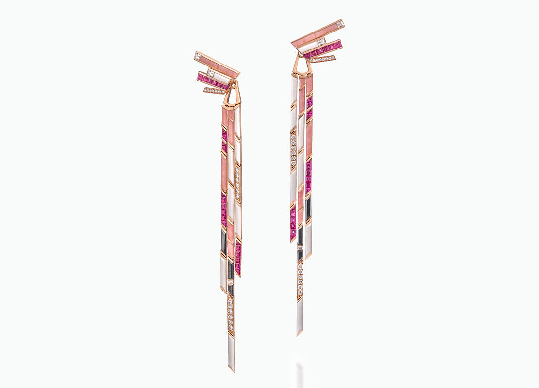 When designing Stellar I was inspired by artist Frank Stella’s vivid geometric paintings from the 1970s. The collection combines strong geometric lines with a soft colour palette creating a playful landscape.