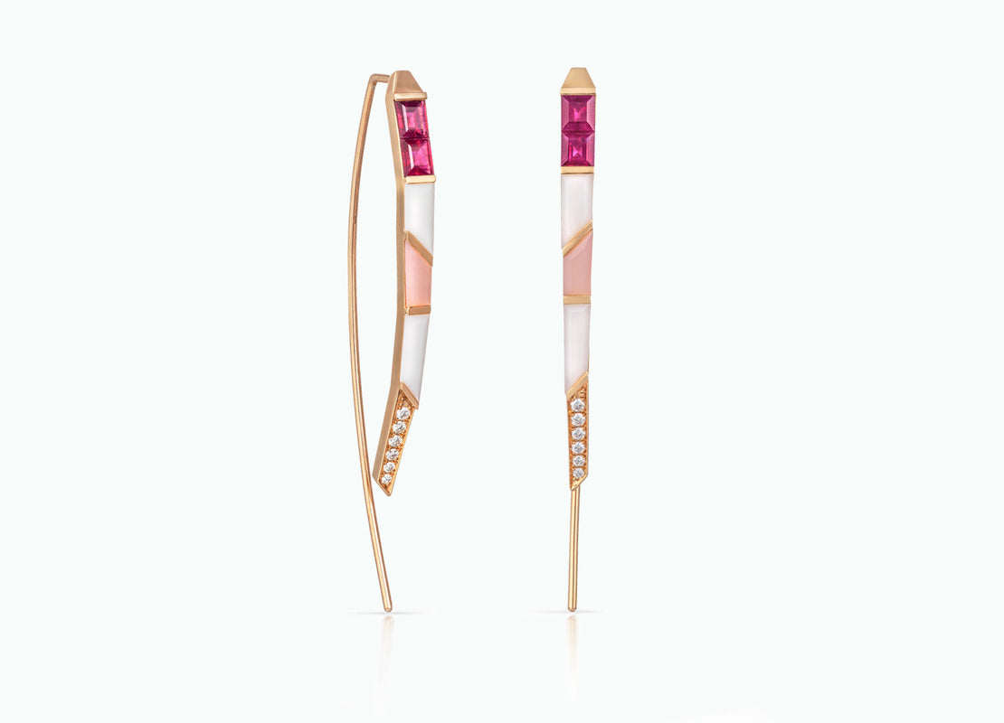 When designing Stellar I was inspired by artist Frank Stella’s vivid geometric paintings from the 1970s. The collection combines strong geometric lines with a soft colour palette creating a playful landscape.