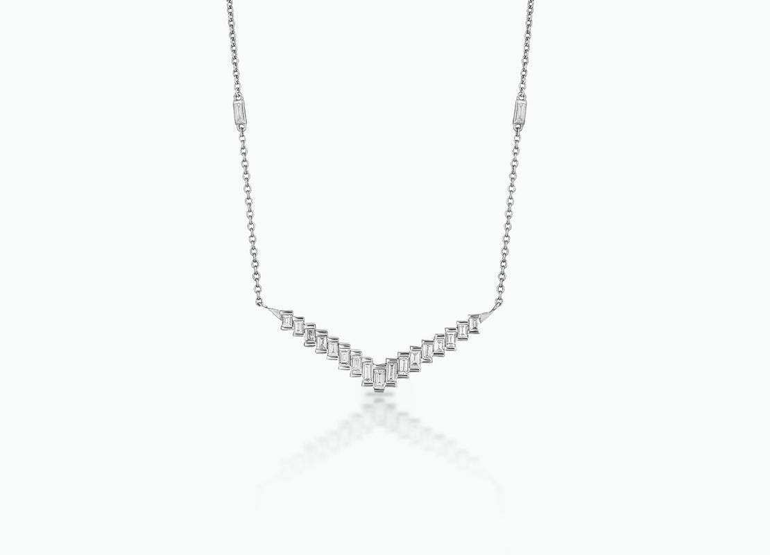 The Huggies and Chevron capsule adds a contemporary edge to jewellery classics. Pendants, bangles and earrings feature rows of sparkling white Diamonds, while stack rings embrace colour with bold Gemstones.